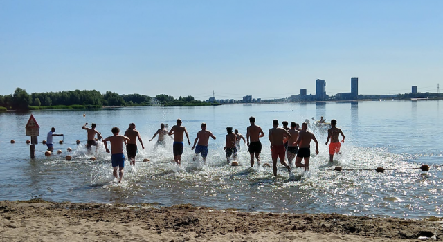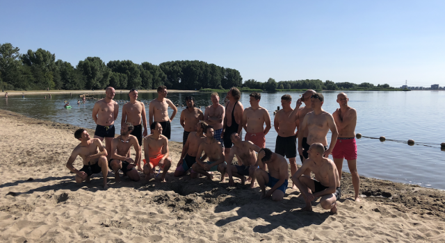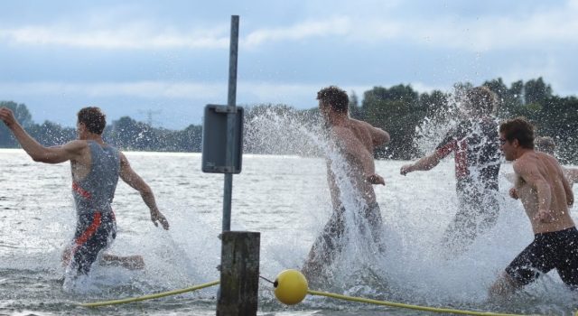 De 14e juli 2019 gaat de boeken in als een bijzonder heuglijke dag. Niet alleen werd onze dertiende(!) roverstriatlon gehouden, maar bovendien was er sprake van een recordaantal deelnemers: 24! Liefst vierentwintig stoere mannen doken zonder schrik de Zevenhuizerplas in, om onder toeziend oog van overvliegende drones en manhaftig opgekomen publiek een dikke 700 meter door wier en wind te zwemmen, alvorens hun ijzeren ros vier rondjes om de Rotte te sturen en af te sluiten met een sprint van ruim 5 kilometer.