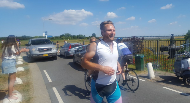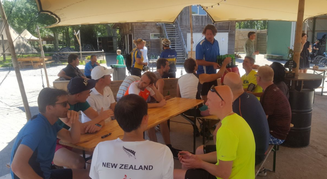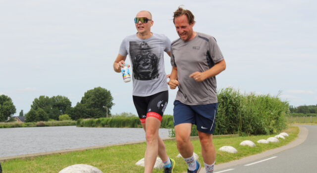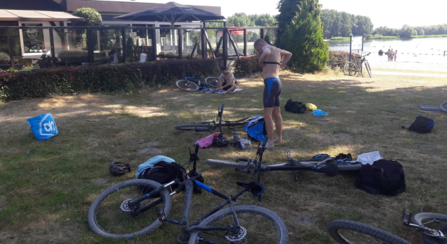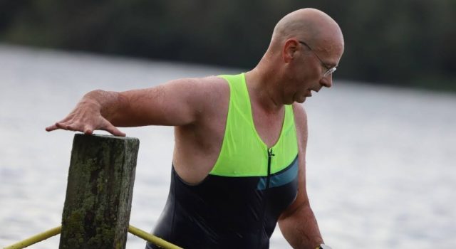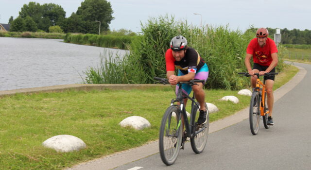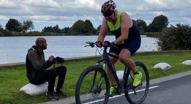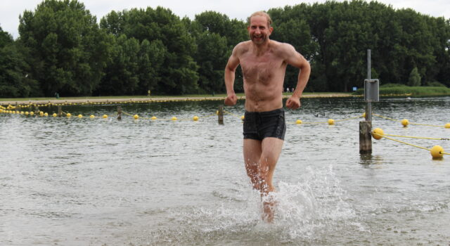Dat was natuurlijk gemakkelijker gezegd dan gedaan. Het water van de Zevenhuizerplas was frisser dan andere jaren. Ja, koud zelfs. “Koud? Understatement” weet Sjaak een dag later via whatsapp te melden, “ik ben nu pas weer een beetje op temperatuur. Brrrr! Met trillende vingers proberen veters te strikken, een fietshelm die maar niet op wilde, een handdoek die ik amper vast kon houden en twee keer liet vallen, wat een bizarre editie was dit!”