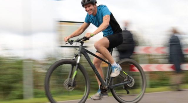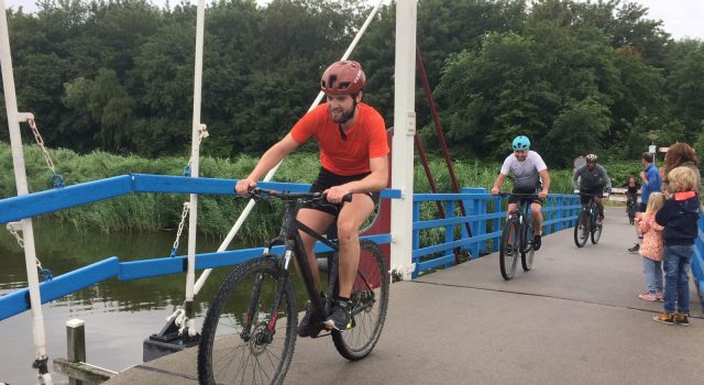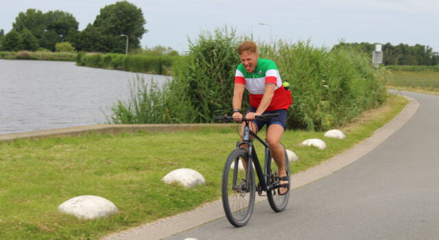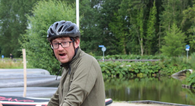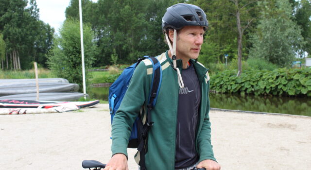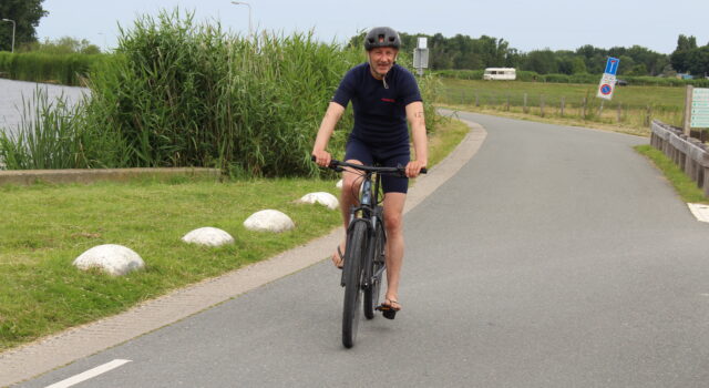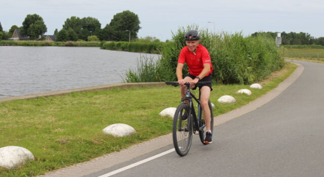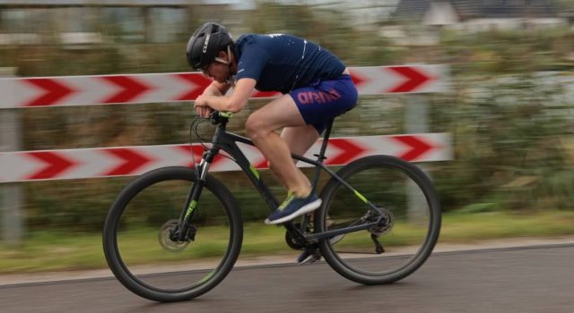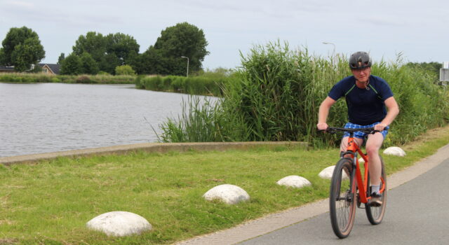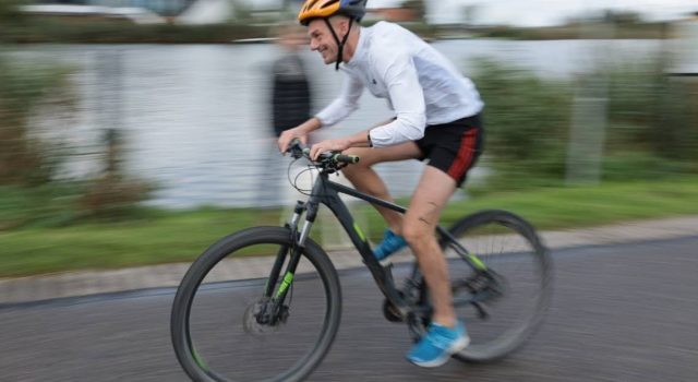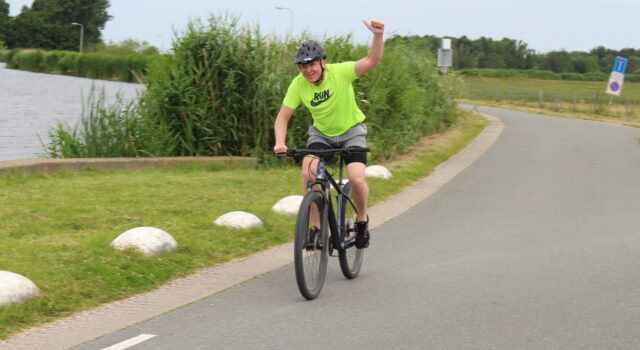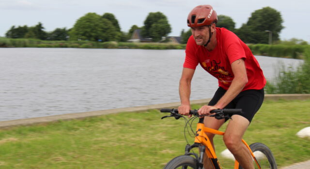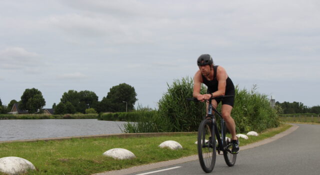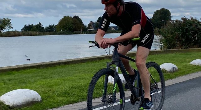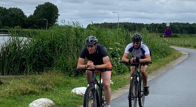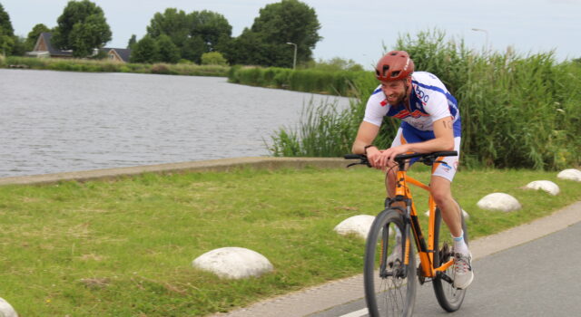 Hup de fiets op naar de Rotte waar de wind altijd vrij spel lijkt te hebben. Ook al staat er niet veel, de rietkragen dansen altijd vrolijk en het lijkt of de wind nooit in de rug staat. Rombout Wessling heeft er geen last van. Hij ramt in geblokte tred de 20km (21,5 om precies te zijn) in 42’15 minuten onder de wielen van zijn mountainbike door.