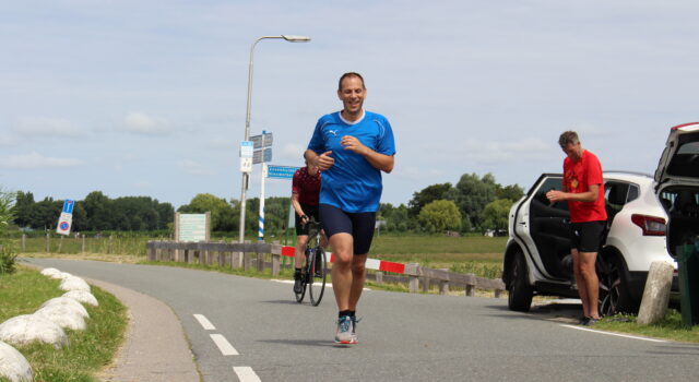 Waar Lent ruimschoots als eerste de fiets verwisselde voor de benenwagen, werd al vrij snel duidelijk dat hij geen kans zou maken tegen de atleten achter hem. Met een looptijd van 19 minuten en 30 seconden deed Sjaak een regelrechte Gebreselassie en ook de vlotte tijden van Nico, Wim en Toby waren de Lent te machtig. Toch feliciteren we onze recorddeelnemer met een prachtig PR. Eervolle vermelding bij het lopen is voor de vriendelijke Zeeuw Ivo Kloet: 21.47 was na het buitenaardse rondje van Sjaak de beste tijd. Ivo heeft beloofd wat meer te gaan fietsen, dus die kunnen we volgend jaar in het linker rijtje verwachten.