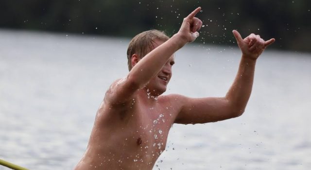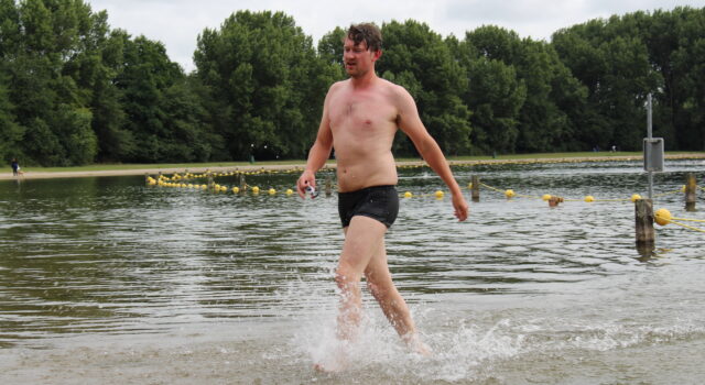 Wie heeft er dan gewonnen? De immer huppelende Wim van der Male misschien die met hardlopen altijd veel tijd terug weet te pakken? Nope. Rombout Wesseling dan? Die gozer die vorig jaar niet moe was te krijgen en zelfs een ronde teveel fietste zonder er erg in te hebben? Nope. De ijzersterke fietser hinkelde al na 10 meter terug het water uit. Het leek op een zweepslag, hopelijk valt de kuitblessure mee.